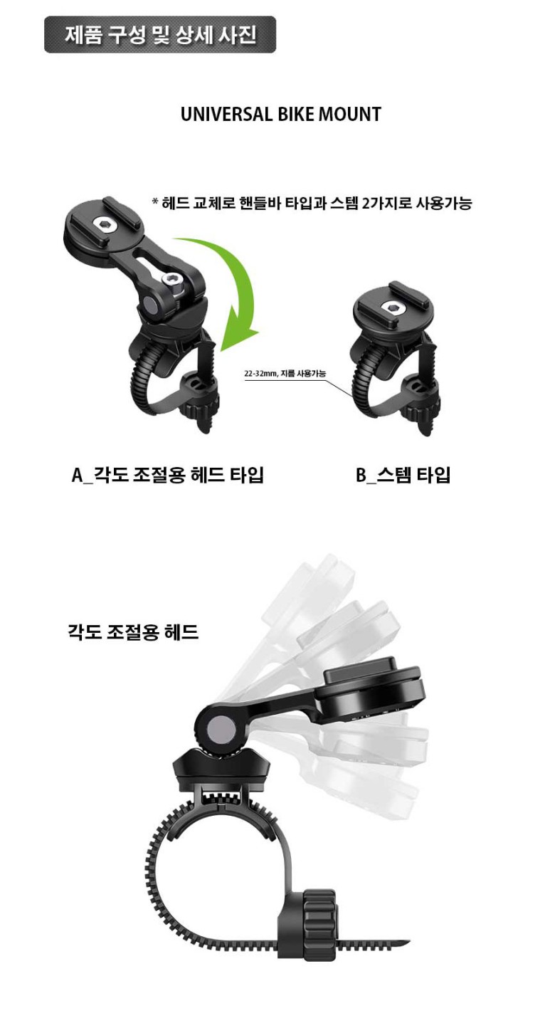 기존 바이크 번들과 차별화된 점이라면 역시 '유니버설 바이크 마운트'의 존재감입니다. 이 마운트는 2가지 모드로