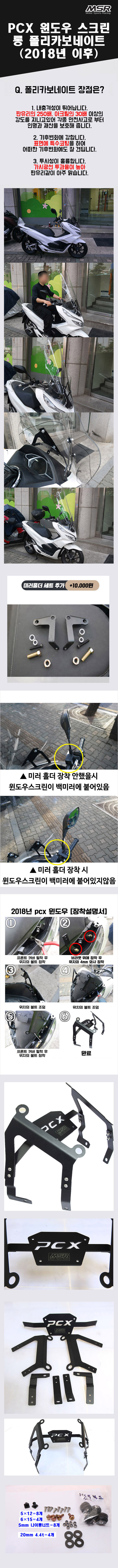 제품설명 : 쉽게 깨지지 않는 폴리카보네이트 혼다 18- 더 뉴 PCX 롱 윈드스크린입니다.
